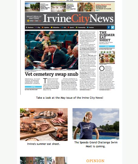 Do you receive the Irvine City News e-alerts in your inbox? You can subscribe here to connect to everything that matters in Irvine: http://www.irvinecitynews.com/subscribe.html